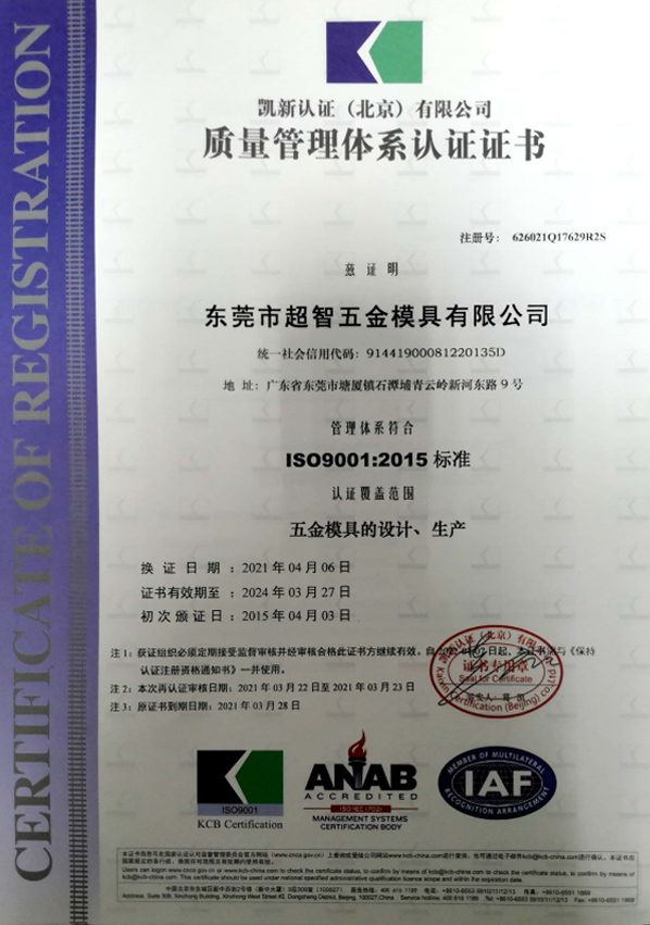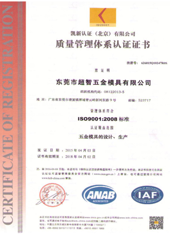 東莞市超智五金模具有限公司(Dong guan Wisdom Tool & Die Co.,ltd.)成立于2013年,公司面積4200平方米,員工120人,公司專注于設計和制造五金模具,產(chǎn)品主要應用于汽車、部分應用于電子和家電。模具主要種類包括:連續(xù)模,機械手,工程模等,模具范圍從80-1200噸不等。產(chǎn)品終端客戶主要有奔馳,寶馬,雷諾,雪鐵龍,標志,通用,福特,豐田,本田,惠普,IBM比亞迪等等。模具主要銷往美國,加拿大,墨西哥,德國,西班牙,法國等。